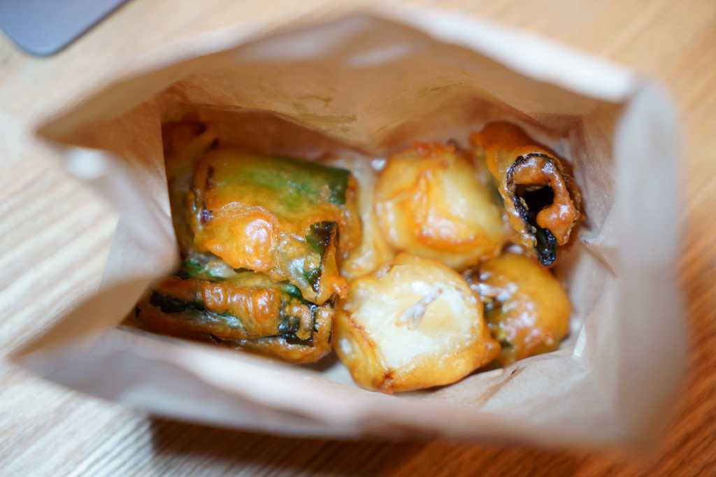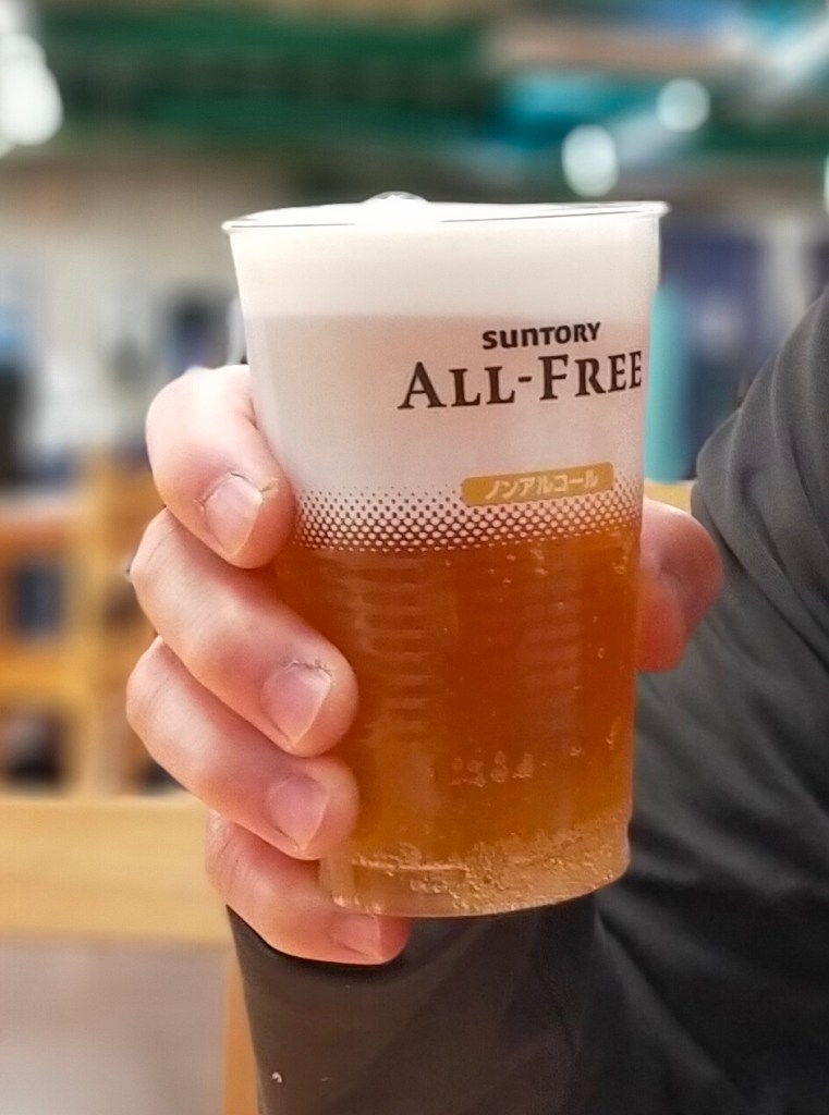 ここ「道の駅しもにた」はフードコートも特筆できます。お気に入りは「まるもや」という揚げ物や。ネギの唐揚げは絶品でオールフリー樽生でつまむとこれは最高のノンアル体験となります。