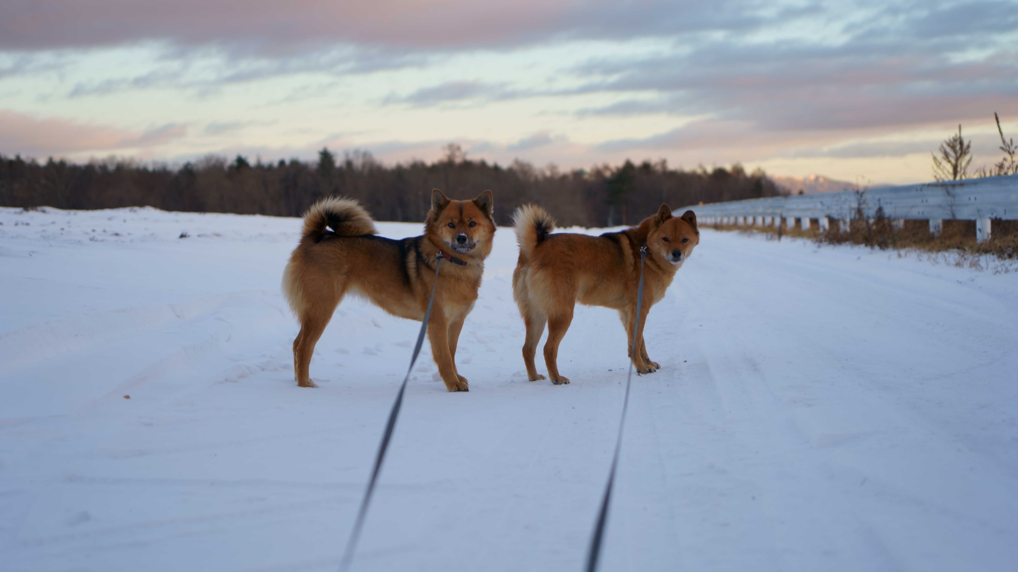 お隣さんの飼っている「川上犬」2頭の散歩を週に2回担当させてもらっています。この冬も何度か氷点下になりましたが、今朝はだいぶ寒かったですね、初寒波でした。一昨日の雪が残っていて二人とも結構ご機嫌です。