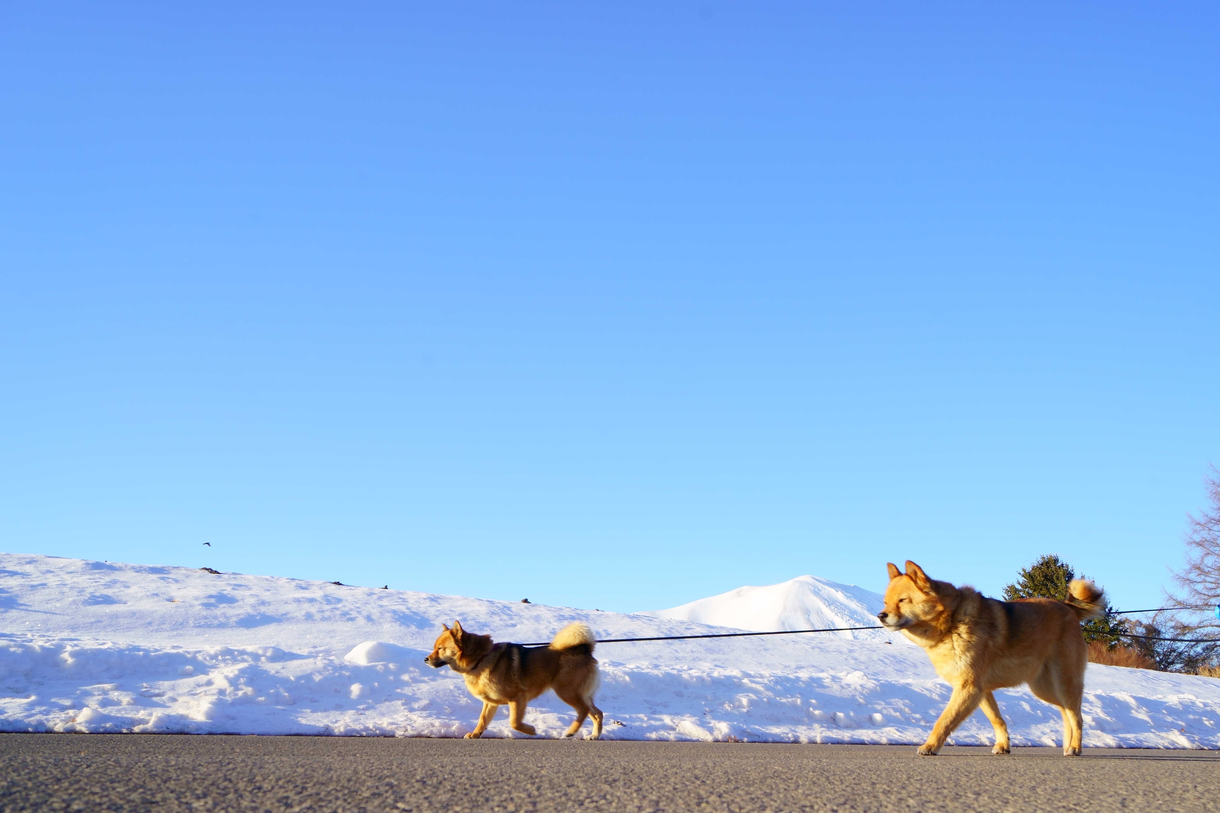 先日40cmの大雪になりましたが、今やその雪もなくなりつつあります。日差しが強いので解けるのも早いんですね。散歩中もわんこたちと共に雪のある場所を探して撮影しています。